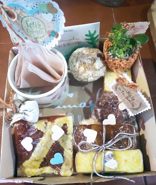 Bandeja obsequio, contiene taza de ceramica artesanal y maceta con suculenta o mini jardín según disponibilidad. Trae surtido de budines, muffins y pastafrola, infusión. Como complemento decorativo, plantita en maceta con tutor, tags, tarjeta para agasajar personalizada. Nuestros productos comestibles están elaborados en base a alimentos reales, sin conservantes ni aditivos artificiales. Consultá por envíos a domicilio. Para el día del maestrx/día de la madre podés sumarle corazón artesanal de alambre en lugar de maceta.