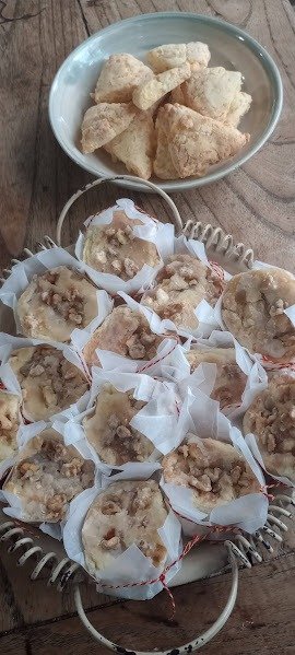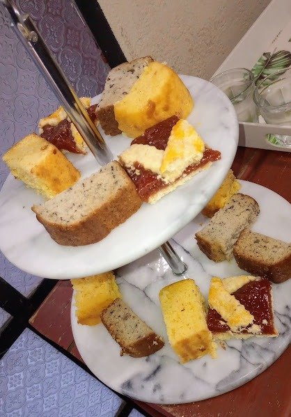 Surtdo dulce 1; contiene dos rodajas de budín, dos muffins, una porción de pastafrola