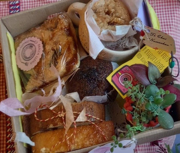 Bandeja obsequio, contiene taza de ceramica artesanal y maceta con suculenta o mini jardín según disponibilidad. Trae surtido de budines, muffins y pastafrola, infusión. Como complemento decorativo, plantita en maceta con tutor, tags, tarjeta para agasajar personalizada. Nuestros productos comestibles están elaborados en base a alimentos reales, sin conservantes ni aditivos artificiales. Consultá por envíos a domicilio. Para el día del maestrx/día de la madre podés sumarle corazón artesanal de alambre en lugar de maceta.
